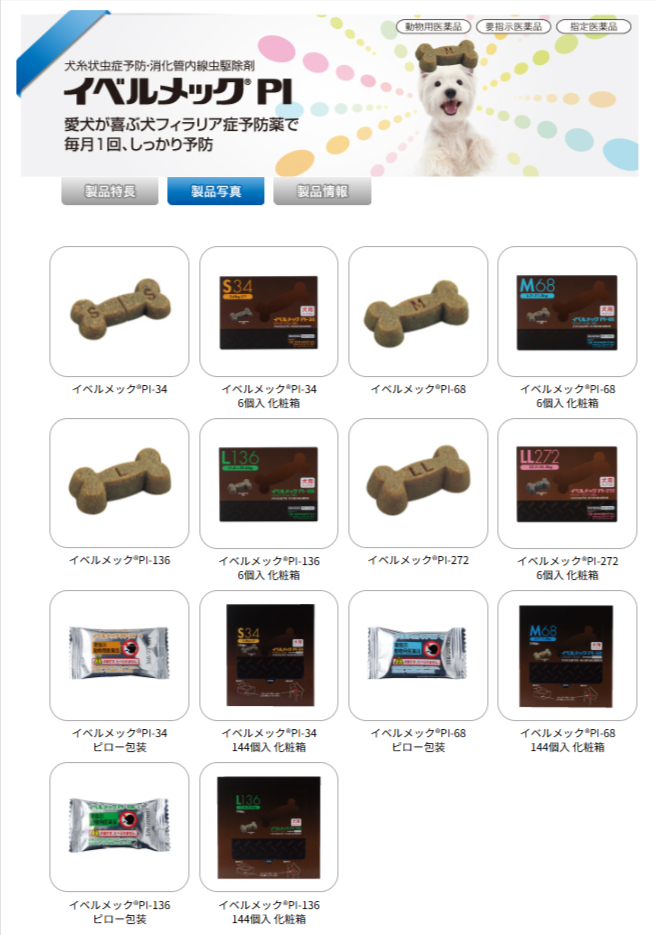犬糸状虫の寄生予防、犬回虫及び犬鉤虫の駆除